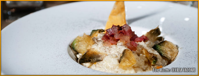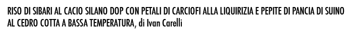 A parte tostate il riso e cuocetelo aggiungendo in più riprese il brodo vegetale e parte della pancetta e dei carciofi (la parte restante servirà a guarnire i piatti). A termine della cottura mantecate il riso con il cacio silano e un pizzico di polvere di liquirizia. Servite il risotto guarnendo il piatto con la pancetta croccante al cedro e i petali di carciofo alla liquirizia.